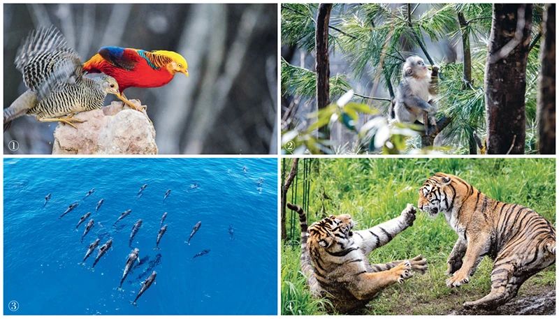 图③为一群短肢领航鲸在海南岛东部海域畅游(新华社记者 张丽芸/摄)。图④为在黑龙江东北虎林园拍摄的东北虎(新华社记者 张涛/摄)。绿水青山就是金山银山。良好生态环境既是自然财富,也是经济财富。绿水青山就是金山银山理念提出20年来,全国各地探索形成守绿换金、添绿增金、点绿成金、借绿生金等转化路径和生态市场、生态旅游等实践模式,让良好生态环境释放出无限经济价值。以示范创建为载体,建成7批共572个生态文明建设示范区和240个“绿水青山就是金山银山”实践创新基地,积极推进生态优势转化为发展优势。注重以自然承载力为基础,遵循自然规律,在生态保护补偿、生态权益交易、资源产权流转、生态产业开发等方面形成了一系列有特色、可借鉴、可推广的实践经验和发展模式。 山水林田湖草沙一体化保护和系统治理。在今天的中国大地,科尔沁沙地正重现往日草原景观,世界第二大流动沙漠塔克拉玛干沙漠系上阻沙防护带编织的“绿色围脖”,大熊猫等300多种珍贵濒危野生动植物种群数量稳中有升。我国重要生态空间、珍贵濒危物种和栖息地大规模、整体性保护的成功实践,在全球生态保护治理的长歌中谱写了精彩的中国乐章。中国于2023年全面完成生态保护红线划定工作,面积合计约319万平方公里,其中陆域生态保护红线面积约304万平方公里,占陆域国土面积比例超过30%,涵盖全部35个生物多样性保护优先区域、90%以上的典型生态系统类型。建立以国家公园为主体的自然保护地体系,设立三江源国家公园、大熊猫国家公园等第一批5个国家公园,建成首个国家植物园。扎实开展国土绿化行动,累计完成修复治理面积超过1亿亩,全国森林覆盖率超过25%,成为森林资源增长*多*快和人工造林面积*大的国家。 生物多样性协同治理。通过采取“全政府、全社会”方式,中国推动形成了政府主导、企业响应、全民参与的生物多样性治理新格局。建立国务院加强生物多样性保护工作协调机制,加强部门协作,分级压实责任,加大管理、投入和监督力度,为生物多样性治理提供了强有力的组织保障。印发《中国生物多样性保护战略与行动计划(2023—2030年)》和《生物多样性保护重大工程实施方案(2025—2030年)》,为全面开展生物多样性治理提供方向和行动指引。建立工商业生物多样性保护联盟机制,积极引导企业采取生物多样性友好型生产经营方式,深化绿色转型,构建绿色价值链,推动可持续发展。 三、促进完善全球生态环境治理体系 人类是休戚与共的命运共同体,唯有携手并进、各尽所能、合作共赢,才能实现人与自然和谐共生的美好愿景。习近平总书记强调:“我们要维护公平合理的生物多样性保护全球秩序,坚定捍卫真正的多边主义,坚定支持以联合国为核心的国际体系和以国际法为基础的国际秩序,形成保护地球家园的强大合力。”中国秉持“各美其美,美美与共”,推动绿色国际合作,促进世界各国携手应对全球环境危机,共同努力构建地球生命共同体,为子孙后代打造一个生机盎然、和谐共生的家园。 广阔的匈牙利大平原,匈塞铁路轨道不远处,一排排鸟巢错落有致地筑造在岩土壁上,这里是崖沙燕的栖息地,约有几百只崖沙燕在此栖息。匈塞铁路修建过程中,中国建设者们倾力保护崖沙燕家园的故事,成为当地的一段佳话,也是共建绿色“一带一路”的缩影。作为共建“一带一路”倡议的发起者,中国秉持共商共建共享原则,坚持绿色发展理念,助力共建“一带一路”国家可持续发展,推动各国在基础设施建设、贸易投资、人文交流等领域开展广泛合作。会同31个国家发起“一带一路”绿色发展伙伴关系倡议,建立“一带一路”绿色发展国际联盟,积极推广生态友好型技术和产业模式,促进生物多样性保护经验的交流与分享,为全球生物多样性保护汇聚智慧、注入动力。此外,依托中国—东盟环境合作、澜湄国家绿色合作、中非环境合作等多维合作架构,中国推动构建新型南南环境合作关系。通过开展联合保护项目、建设跨境生态廊道、开拓环保产业和技术合作等多重行动,推动实施系统破解生物多样性保护与可持续发展难题的国际合作。通过打造各国政府主导、区域协同、民间参与的立体化合作框架,引领实现生物多样性治理从理念共识到机制创新的跨越。 “我们都致力于同一个目标,即建设一个共同发展的公正世界”。习近平总书记在2024年11月召开的二十国集团领导人第十九次峰会上的讲话中指出,为了建设这样的世界,要支持发展中国家采取可持续的生产和生活方式,妥善应对生物多样性丧失等挑战,完善全球生态治理,建设生态友好型世界经济。中国是支持全球发展事业的行动派和实干家,将继续坚定不移践行多边主义,为达成务实可行的国际文书作出积极贡献,以开放的姿态、扎实的行动,推进有效、包容和可持续的全球生物多样性保护,以兼收并蓄的宽广胸怀,推动全球生态环境治理体系改革,为共建地球生命共同体注入更多正能量。